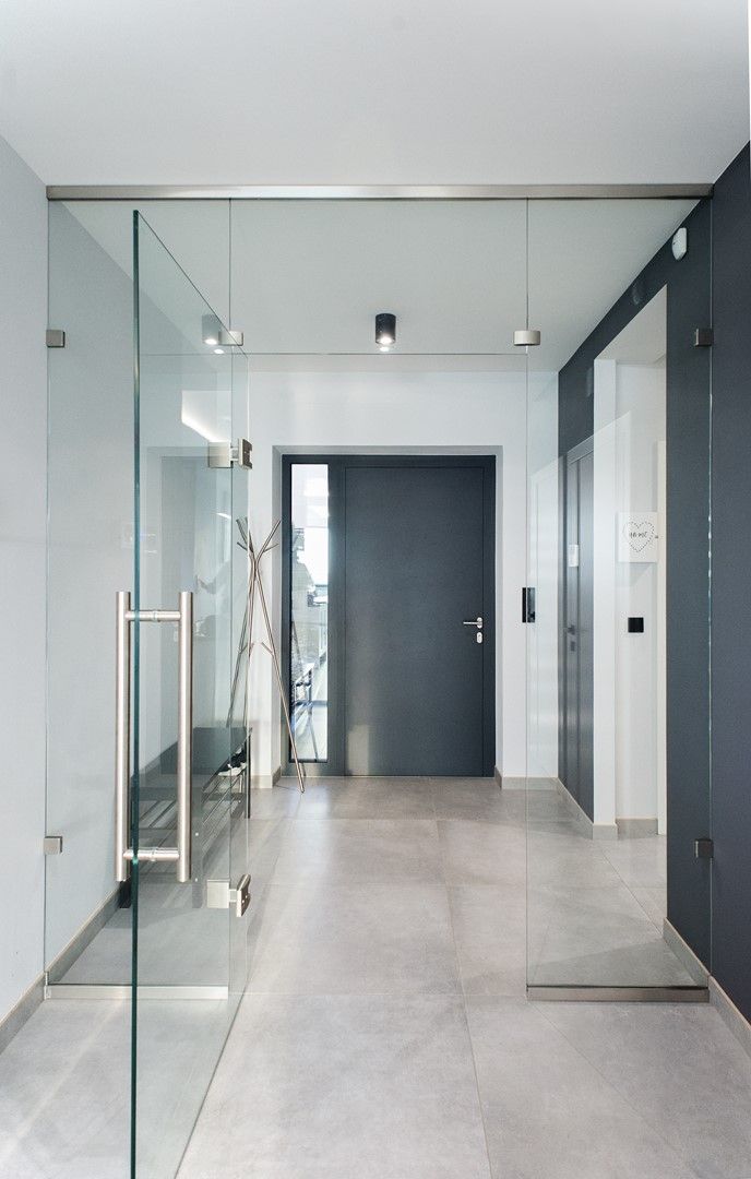 Dyskretne, ukryte zawiasy, oszczędne w formie pochwyty oraz rygorystycznie zachowane proporcje to fundament naszej filozofii projektowania. Dzięki niemal jubilerskiej precyzji spasowania wszystkich elementów, drzwi przestają być jedynie elementem użytkowym, stając się wyrafinowaną wizytówką i eleganckim dopełnieniem strefy wejściowej.