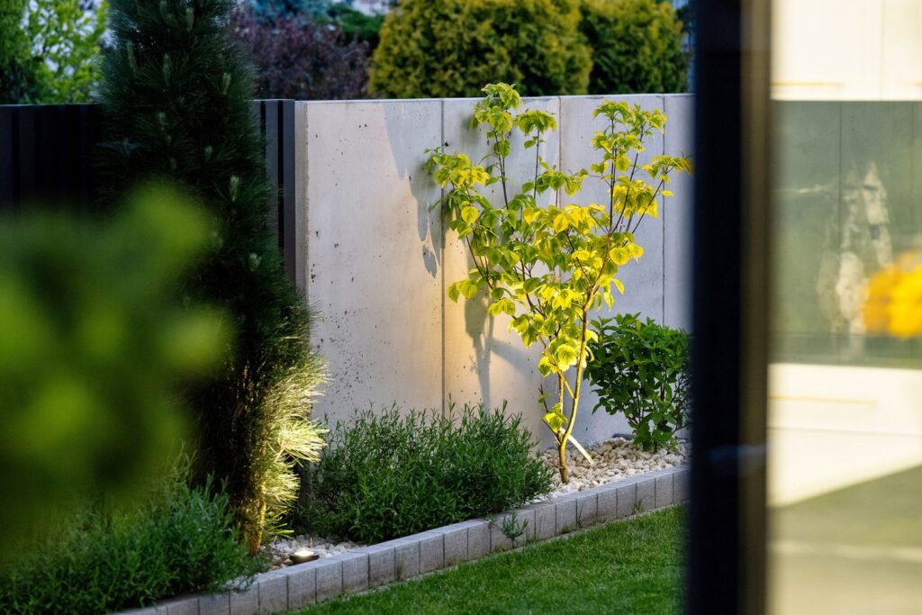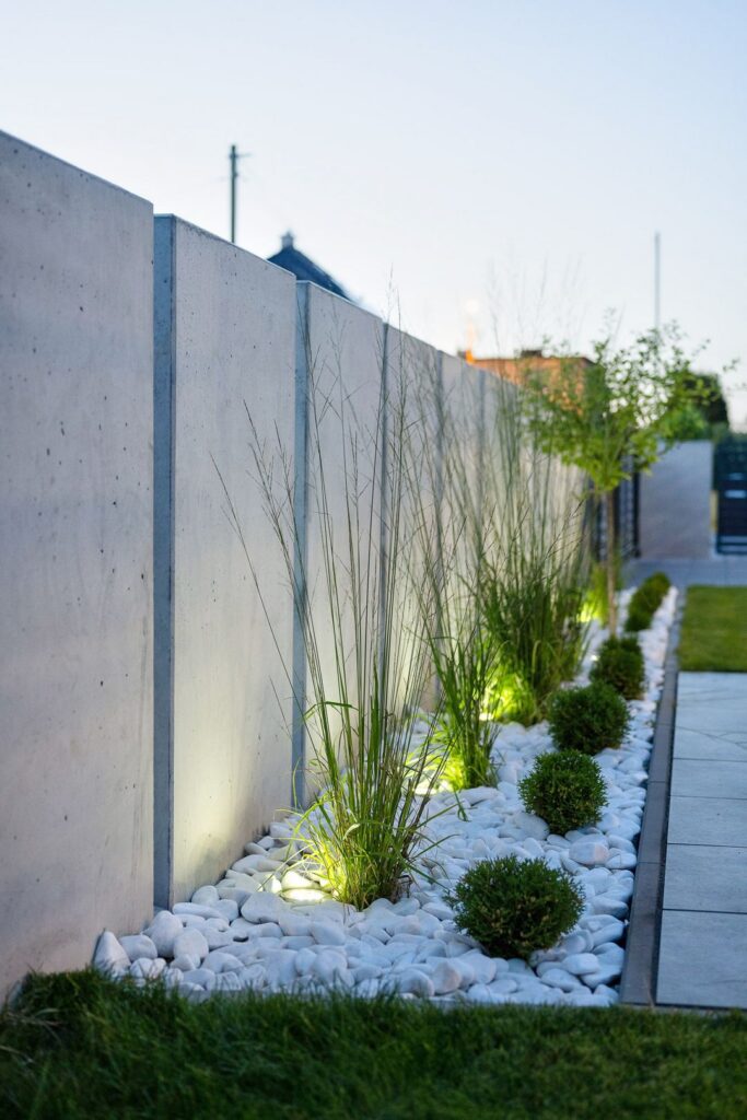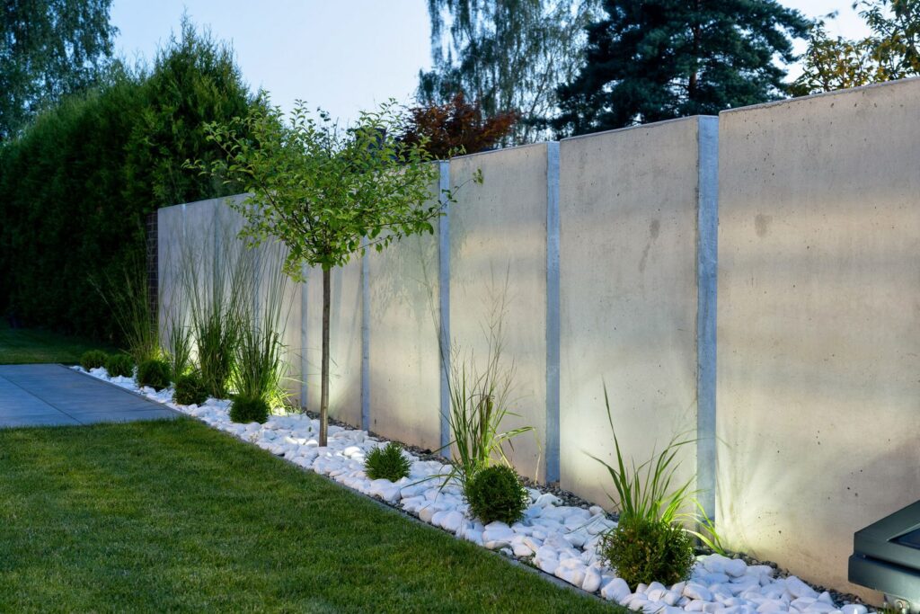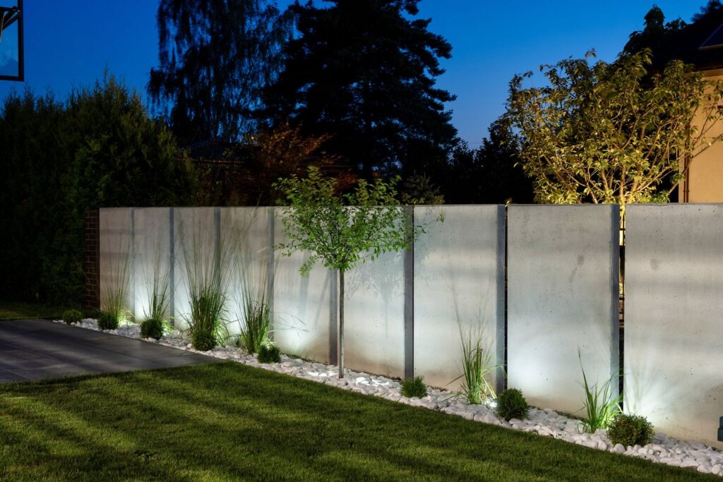Ogrodzenie betonowe z oświetleniem LED