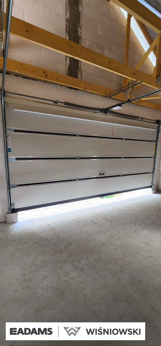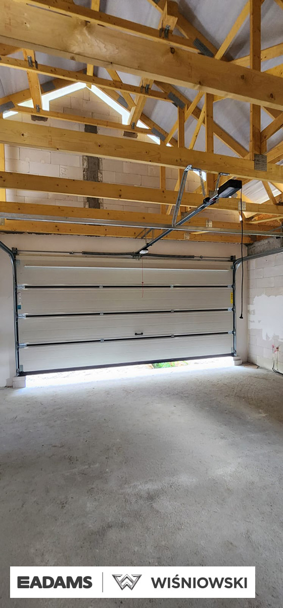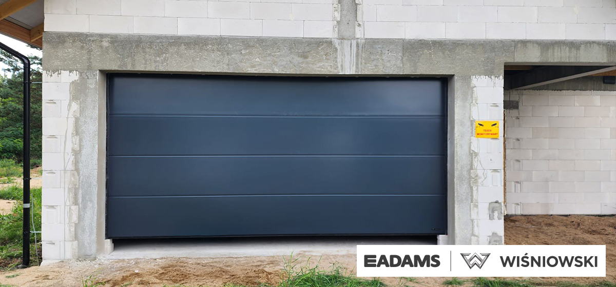 Idealnym dopełnieniem całej inwestycji jest nowoczesna brama segmentowa UniTherm w klasycznym kolorze RAL 7016 (antracyt). Dzięki zastosowaniu paneli typu G, pozbawionych jakichkolwiek przetłoczeń, brama zyskała wyjątkowo minimalistyczny i elegancki wygląd, który perfekcyjnie podkreśla współczesny styl budynku. Model UniTherm to rozwiązanie dla osób poszukujących najwyższej jakości oraz doskonałej izolacji termicznej, co w połączeniu z niezawodną automatyką Wiśniowski SPARK 1100 gwarantuje domownikom łatwy, szybki i przede wszystkim bezpieczny dostęp do garażu przez długie lata.