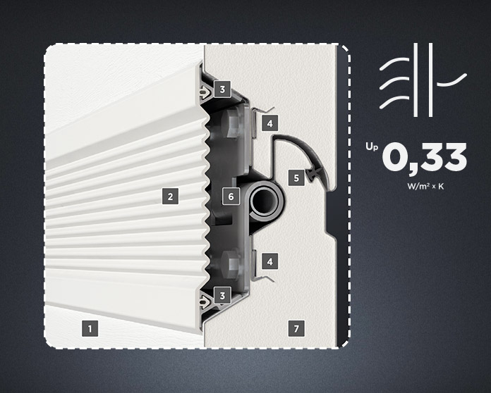 UniTherm to brama klasy PREMIUM, zaprojektowana z myślą o nowoczesnym, energooszczędnym budownictwie. Dzięki innowacyjnej konstrukcji paneli INNOVO, brama zapewnia znacznie lepszą izolację termiczną, obniżając koszty ogrzewania – jest nawet o 20% cieplejsza niż standardowe rozwiązania dostępne na rynku.